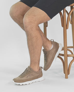 Herren-Sneaker. Velourleder Taupe. Schnürverschluss. Lederinnenfutter. Anatomisch herausnehmbare Innensohle. Leichte, flexible und robuste Sohle aus EVA. Absatzhöhe: 5 cm. 100% Hergestellt in Spanien.