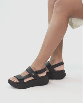 Damen Platform sandals. WATERPROOF Nappaleder in Schwarz. Klettverschluss. Lederinnenfutter. Anatomisch Innensohle. Flexible und robuste Sohle aus Polyurethan. Absatzhöhe: 6.5 cm. 100% Hergestellt in Spanien.