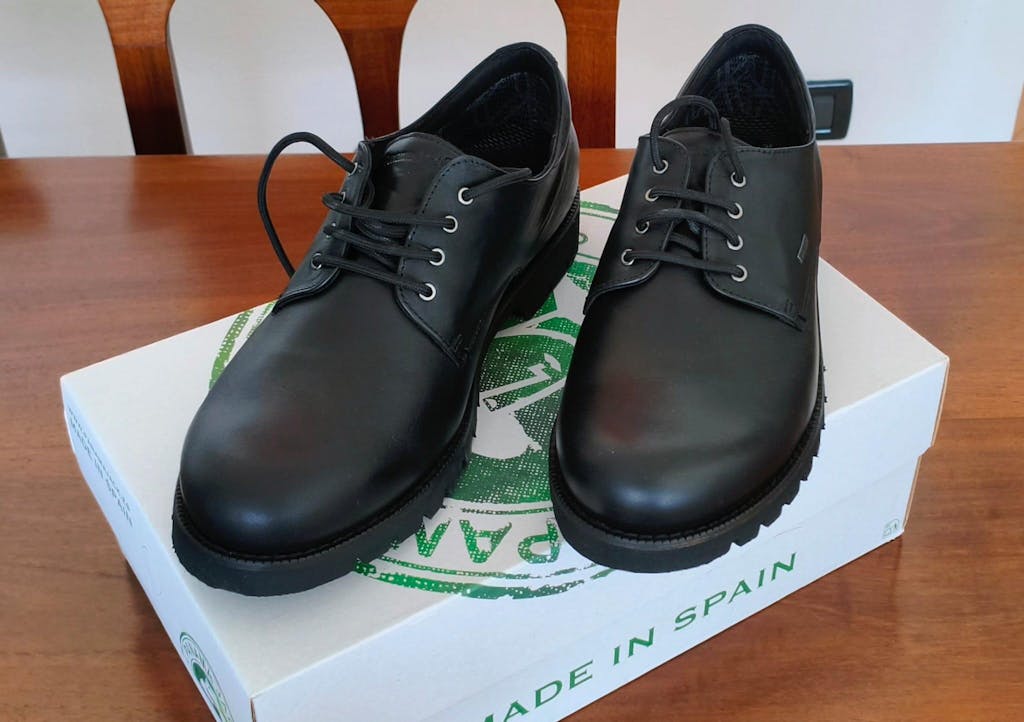 Flat men's Shoe. WATERPROOF Black Napa Leather. Lace-up Closure. Gore-Tex lining. Removable anatomical insole. Natural, flexible and durable rubber sole. Heel height: 4 cm. 100% Made in Spain.