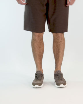Men's sneakers. Suede in pebble-grey. Lace-up Closure. Leather lining. Removable anatomical insole. Lightweight, flexible and strong EVA rubber sole. Heel height: 5 cm. 100% Made in Spain.
