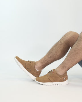 Men's sneakers. WATERPOOF Camel Nobuck Leather. Lace-up Closure. Leather lining. Removable anatomical insole. Lightweight, flexible and strong EVA rubber sole. Heel height: 5 cm. 100% Made in Spain.